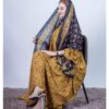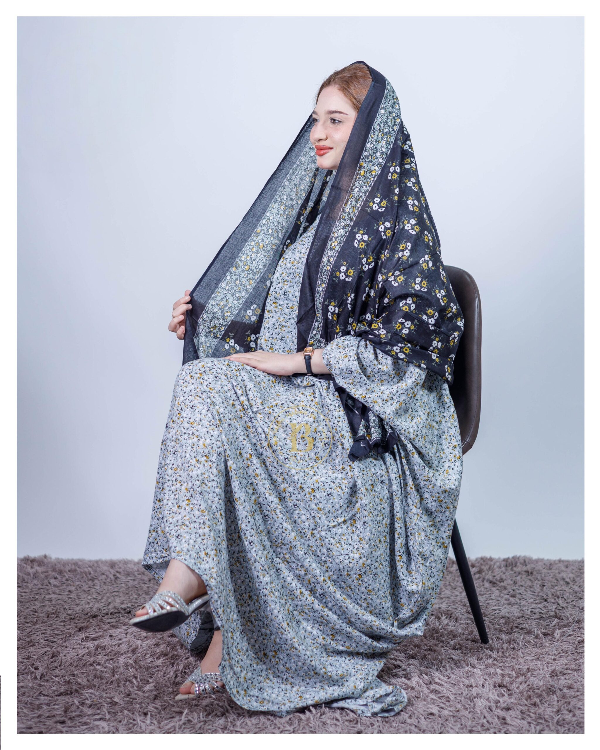 ثوب أبيض عاجي مصنوع من القطن بتصميم زهور جميلة مطبوع عليه شيلة متناسقة مخيطة على الطراز الظفاري