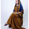 ثوب أبيض وأسود اللون مصنوع من القطن بتصميم جميل مطبوع عليه شيلة مطابقة مخيطة على الطراز الظفاري