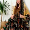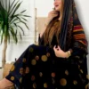 ثوب أحمر اللون مصنوع من القطن بتصميم جميل مطبوع عليه شيله مطابق مخيط على طراز الظفاري