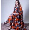 ثوب أخضر اللون مصنوع من القطن بتصميم جميل مطبوع عليه شيلة متناسقة مخيطة على الطراز الظفري
