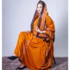 ثوب أرجواني اللون مصنوع من القطن بتصميم جميل مطبوع عليه شيلة متناسقة مخيطة على الطراز الظفاري