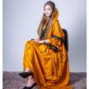 ثوب أزرق اللون مصنوع من القطن، مزين بتصميم جميل مطبوع عليه شيلة متناسقة، ومخيط على الطراز الظفاري
