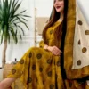 ثوب أزرق اللون مصنوع من القطن بتصميم جميل مطبوع عليه شيلة متناسقة مخيطة على الطراز الظفاري