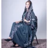 ثوب أزرق اللون مصنوع من القطن بتصميم جميل مطبوع عليه شيلة متناسقة مخيطة على الطراز الظفاري