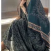 ثوب أسود اللون مصنوع من القطن بتصميم جميل مطبوع عليه شيلة مطابقة مخيطة على الطراز الظفاري