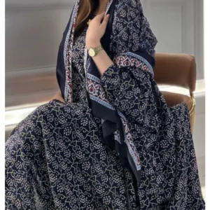 ثوب أسود اللون مصنوع من القطن بتصميم جميل مطبوع عليه شيلة مطابقة مخيطة على الطراز الظفاري