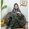 ثوب أسود اللون مصنوع من القطن بتصميم جميل مطبوع بشيلة متناسقة مخيطة على الطراز الظفاري