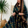 ثوب أسود اللون مصنوع من القطن مع تصميم زهور جميل مطبوع مع شيله مطابقة مخيطة على طراز الظفاري
