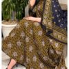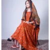 ثوب أسود ووردي اللون مصنوع من القطن، مزين بتصميم جميل مطبوع عليه شيلة متناسقة مخيطة على الطراز الظفاري