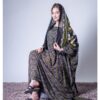 ثوب أصفر اللون مصنوع من القطن بتصميم زهور جميلة مطبوع عليه شيلة متناسقة مخيطة على الطراز الظفاري