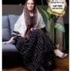 ثوب إيراني أسود اللون مصنوع من القطن مزين بنقشة البولكا والزهور ومطرز بشيلة متناسقة ومخيطة على الطراز الظفاري