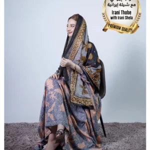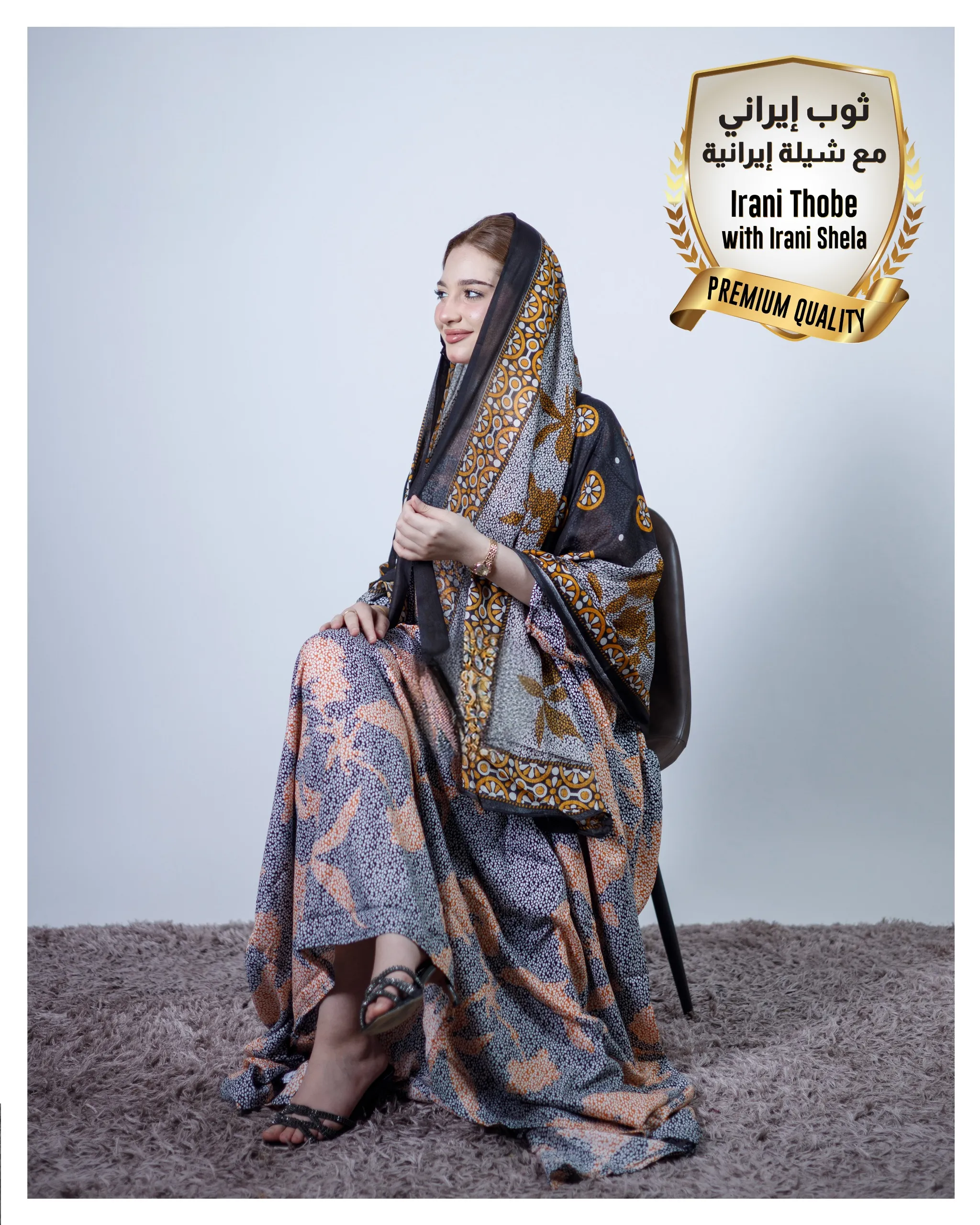 ثوب إيراني متعدد الألوان مصنوع من القطن بتصميم جميل مطبوع بشيلة متناسقة ومخيطة على الطراز الظفري