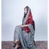 ثوب أسود اللون مصنوع من القطن مع تصميم زهور جميل مطبوع ومزين بشيلة متناسقة مخيطة على الطراز الظفاري