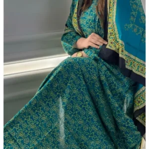 ثوب باللون الأخضر البحري مصنوع من القطن بتصميم جميل مطبوع عليه شيلة مطابقة مخيطة على الطراز الظفاري