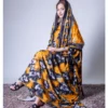 ثوب برتقالي اللون مصنوع من القطن بتصميم جميل مطبوع عليه شيلة متناسقة مخيطة على الطراز الظفري