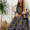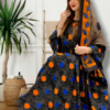 ثوب بلونأخضر مصنوع من القطن بتصميم بولكا جميل مطبوع مع شيلة مطابقة مخيطة على طراز ظفاري