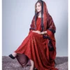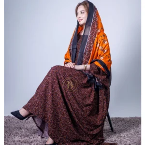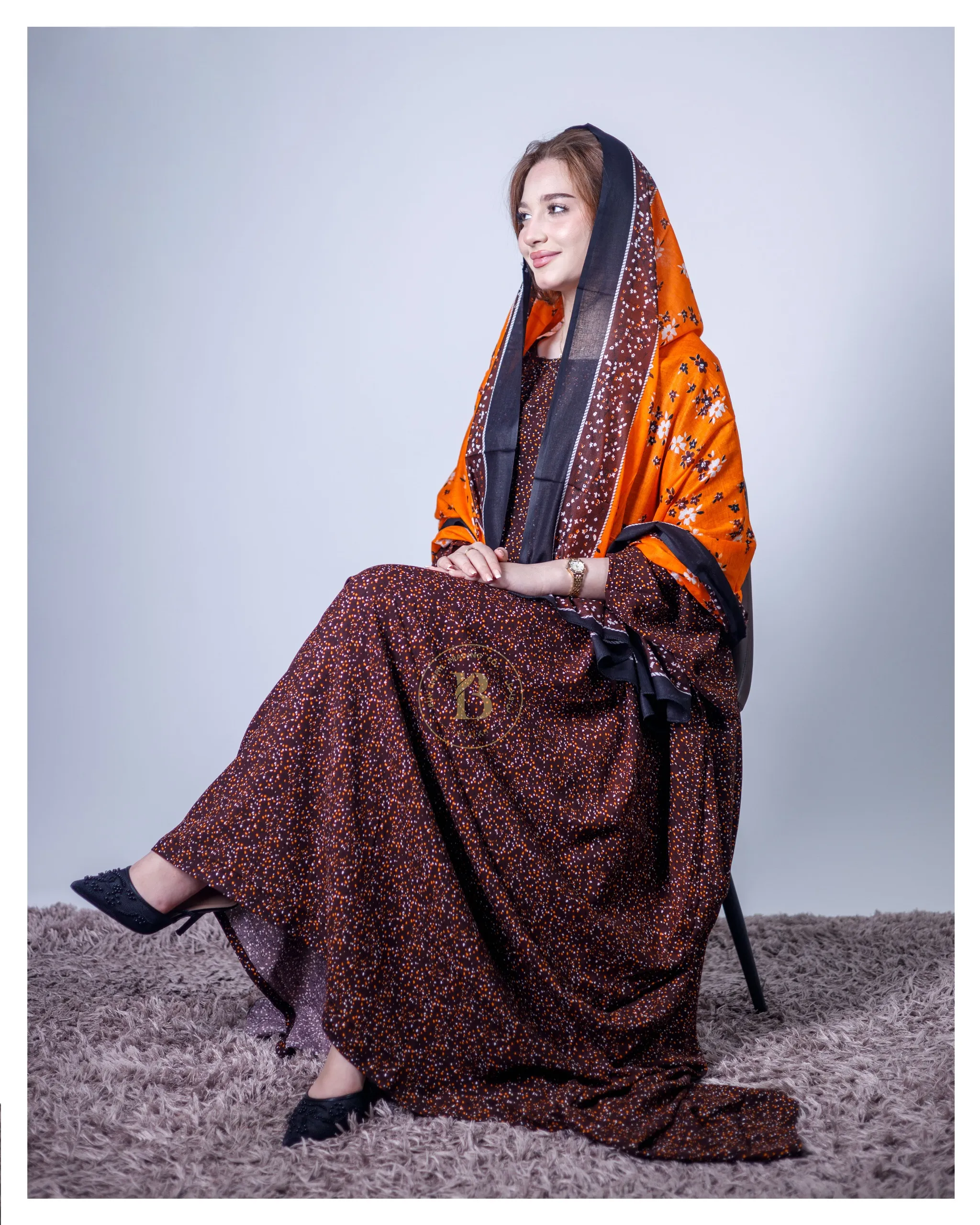 ثوب بلون التوت مصنوع من القطن بتصميم جميل مطبوع بشيلة متناسقة ومخيطة على الطراز الظفاري