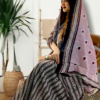 ثوب بلون ماهرون مصنوع من القطن بتصميم بولكا جميل مطبوع مع شيلة مطابقة مخيطة على طراز ظفاري