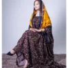ثوب بلون وردي فاتح مصنوع من القطن، مزين بطبعة زهور جميلة، مع شيلة متناسقة، ومخيط على الطراز الظفاري