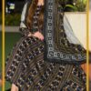 ثوب رمادي اللون مصنوع من القطن بتصميم جميل مطبوع، مزود بشيلة مطابقة مخيط على الطراز الظفاري