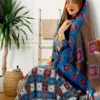 ثوب متعدد الألوان مصنوع من القطن مع تصميم زهور جميل مطبوع مع شيله مطابقة مخيطة على طراز الظفاري