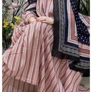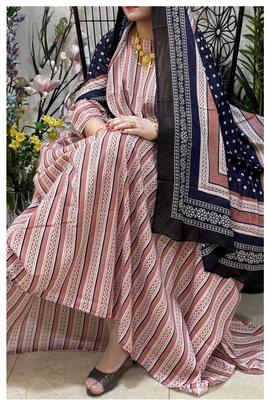 ثوب وردي اللون مصنوع من القطن بتصميم جميل مطبوع عليه شيلة مطابقة مخيطة على الطراز الظفاري
