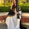 ملابس باللونين الأبيض والأسود مصنوعة من القطن بتصميم جميل مطبوع مع شيلة مطابقة مخيطة على الطراز الظفاري