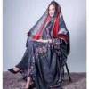 ملابس قطنية بلون ماهرون بتصميم جميل مطبوع عليها شيلة متناسقة مخيطة على الطراز الظفاري