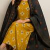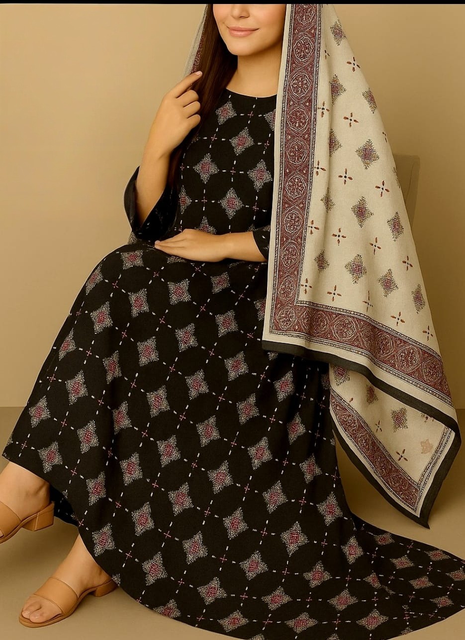 ثوب بني غامق اللون مصنوع من القطن بتصميم جميل مطبوع مع شيلة متناسقة مخيطة على الطراز الظفاري