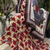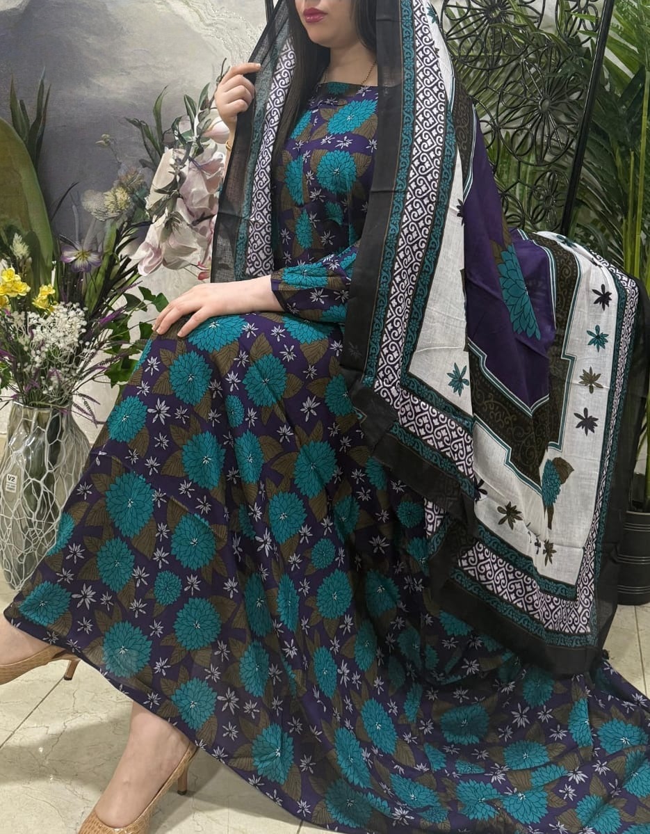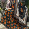 ثوب مصنوع من القطن بتصميم زهور خضراء جميلة مطبوعة مع شيلة متناسقة مخيطة على الطراز الظفاري