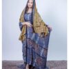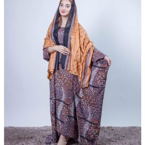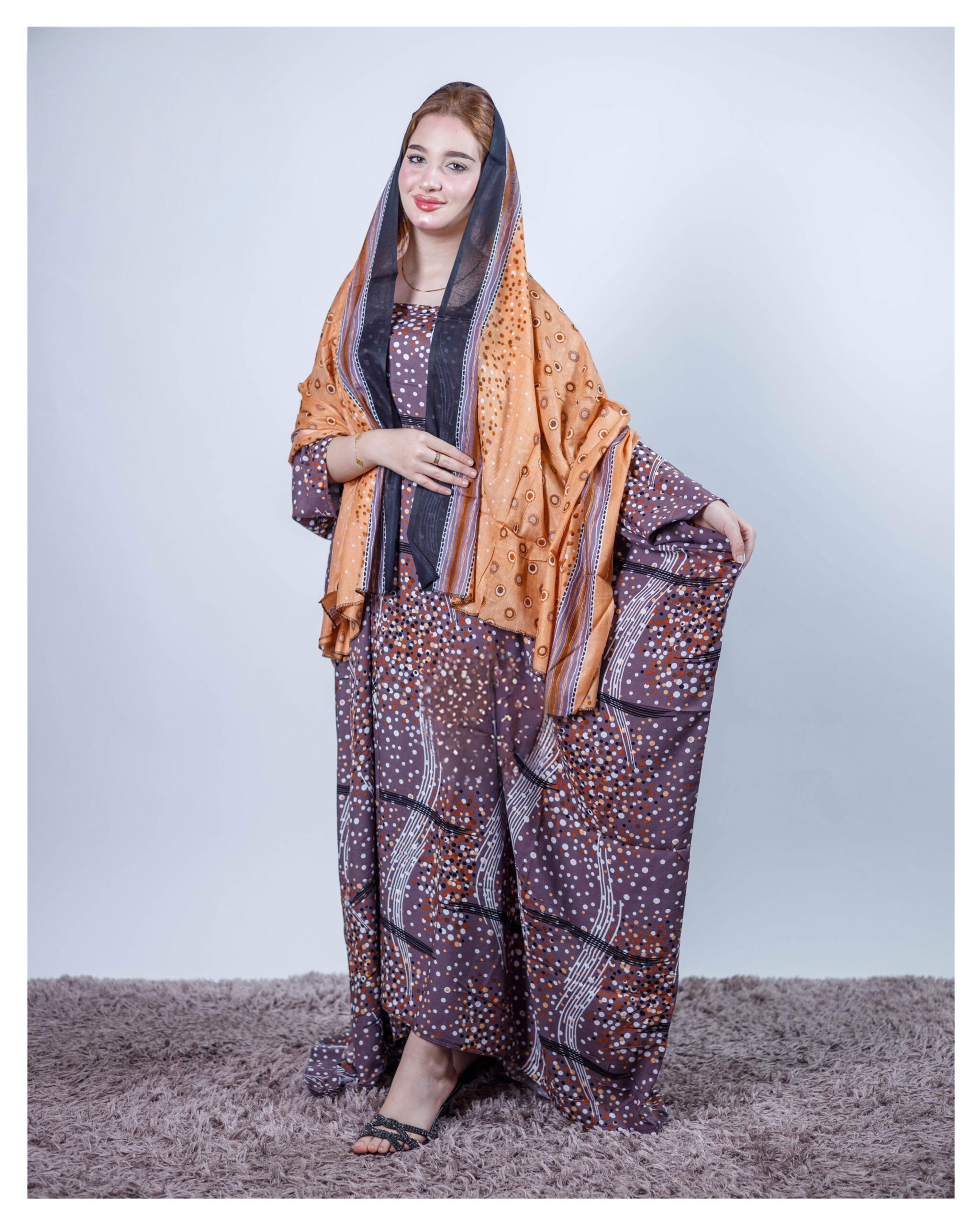 ثوب باللون الأرجواني مصنوع من القطن بتصميم جميل مطبوع عليه شيلة متناسقة مخيطة على الطراز الظفاري